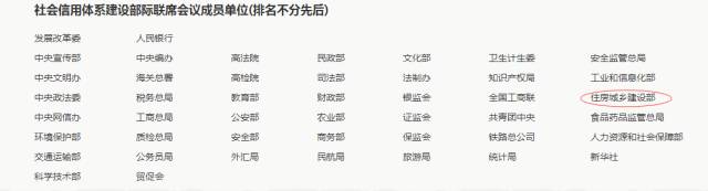 其中,住建部、安监总局等也是社会信用体系建设部际联席会议成员。