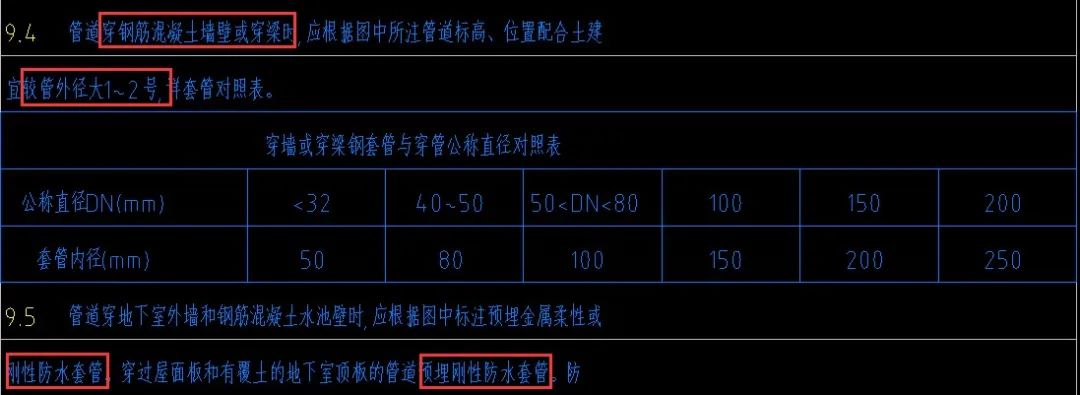 6.管道出地下室及外墙是否需要防水套管、穿越楼板及梁是否需要钢套管;