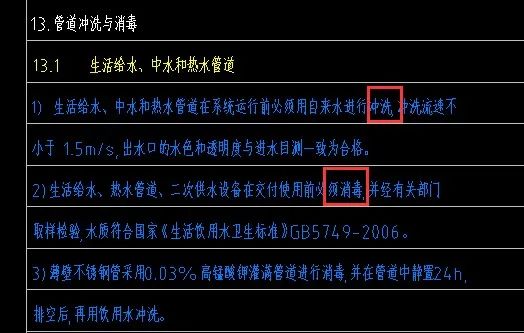 5.管道是否需要试压(承压管道和设备)、灌水试验、通球试验(非承压管道和设备)、冲洗;