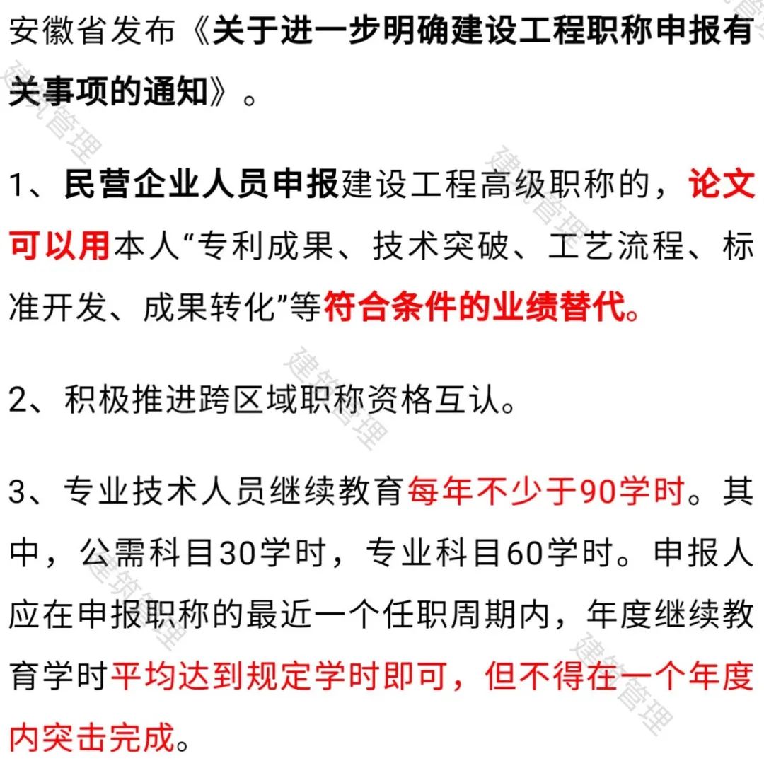 为进一步做好建设工程职称申报工作,更好为广大专业技术人员提供服务和指导,根据《安徽省建设工程专业技术资格评审标准条件》(建人〔2019〕87号,以下简称《标准条件》)等有关规定,经商省人力资源社会保障厅同意,结合我省建设工程实际,现就职称申报有关事项进一步明确如下: