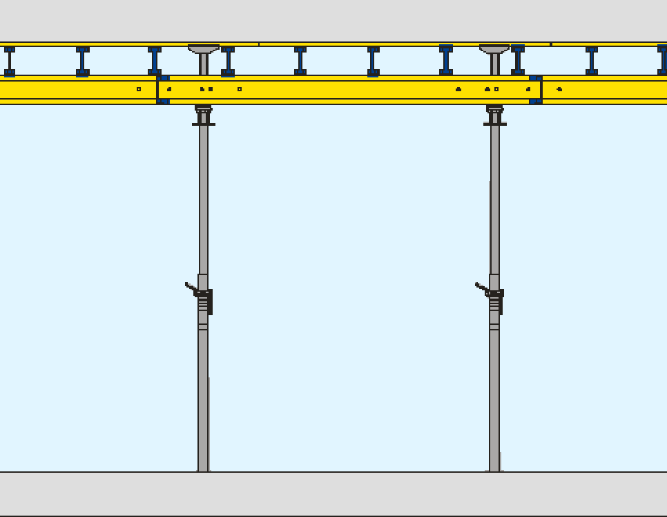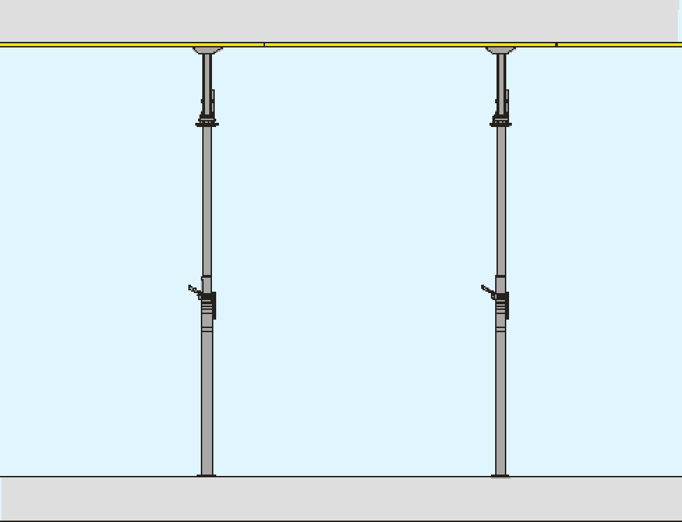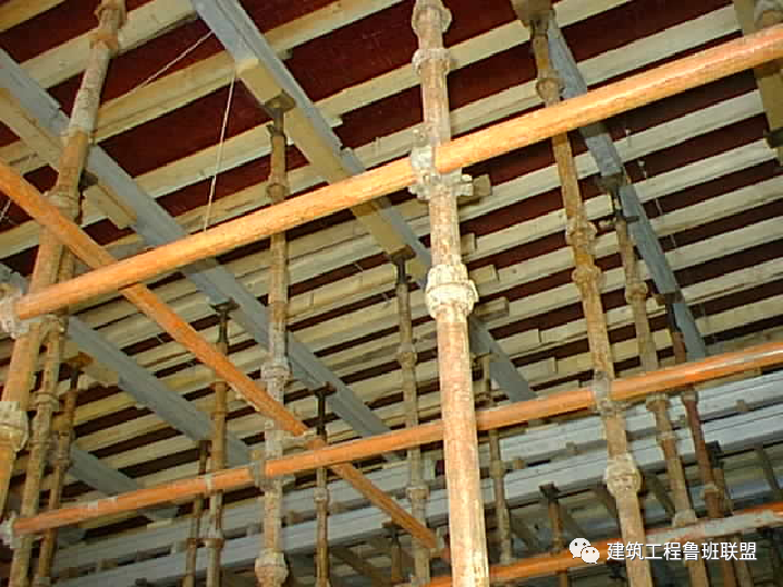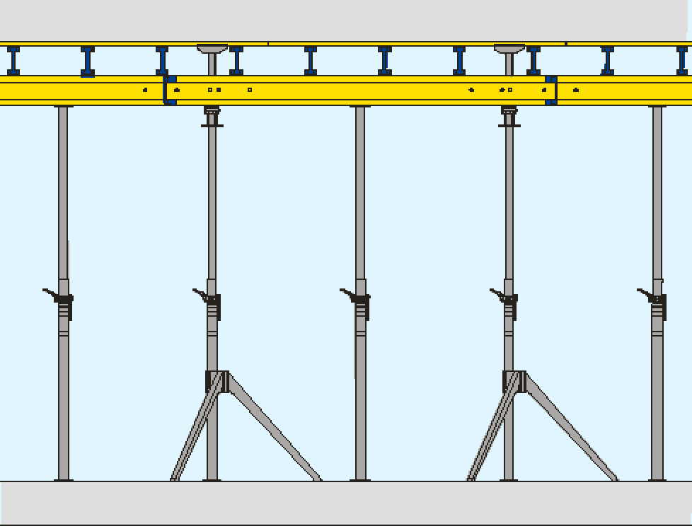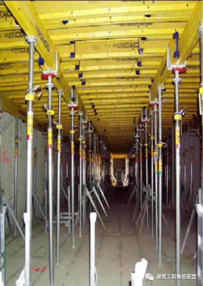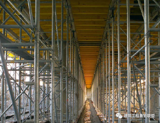 ① 狭窄模板同混凝土接触,可调支撑头,独立式钢支撑