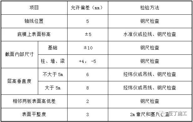 现浇结构模板安装的允许偏差及检验方法