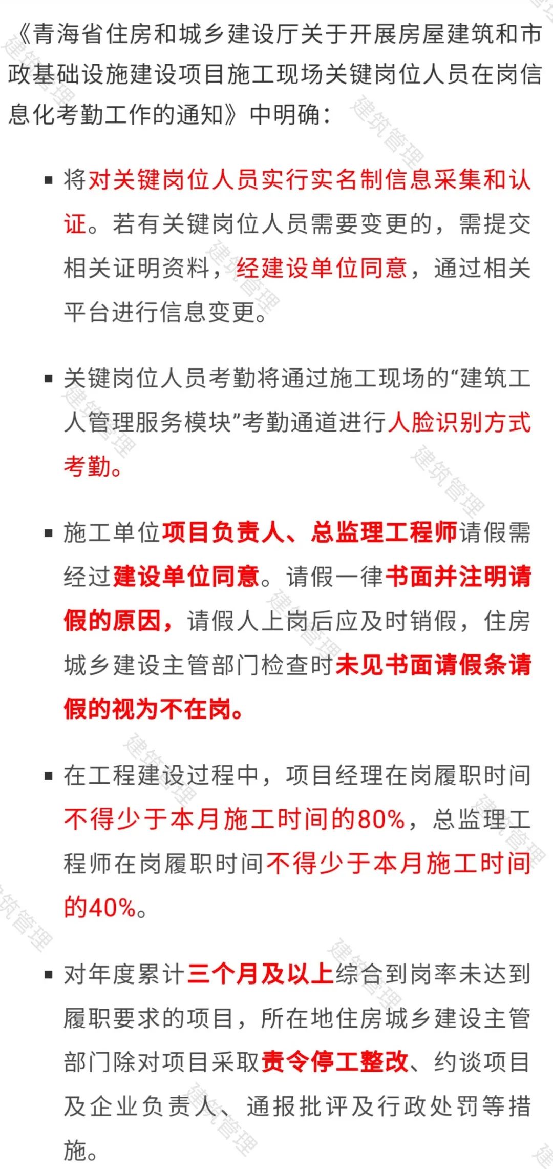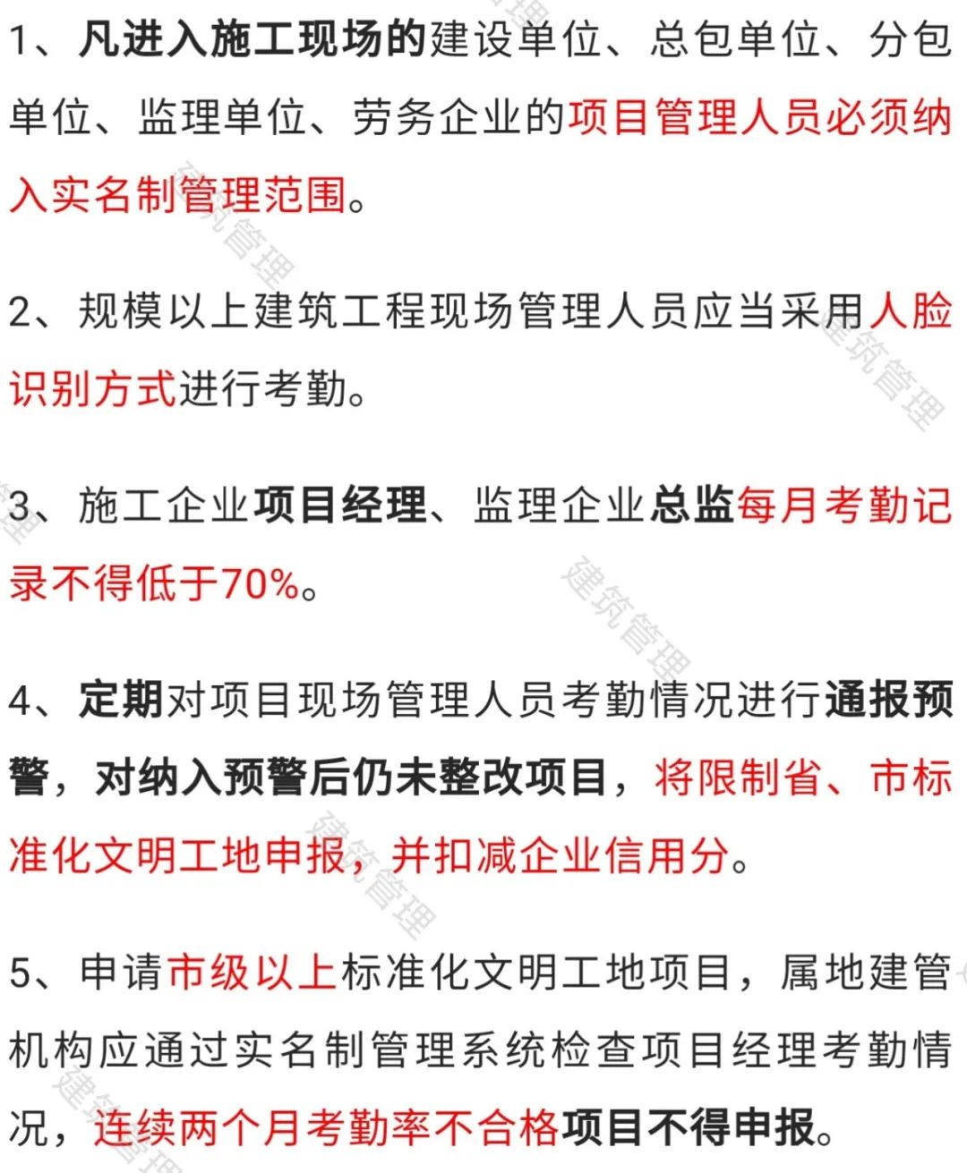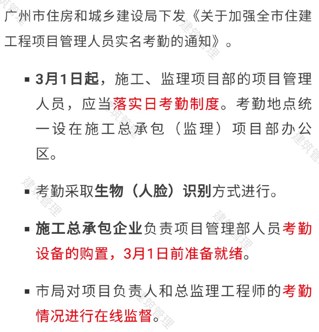 此前,全国各地已有不少省市对施工现场项目管理人员的考勤率作出了明确规定。