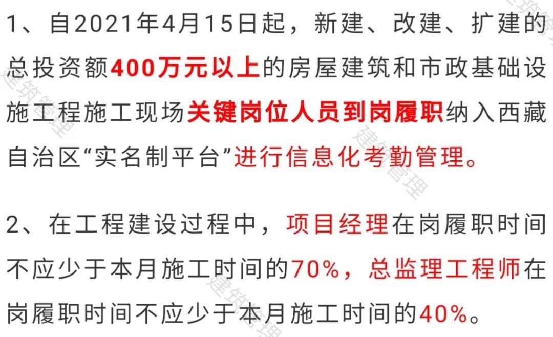 400万以上项目必须实名管理!项目经理到岗率不得低于70%!