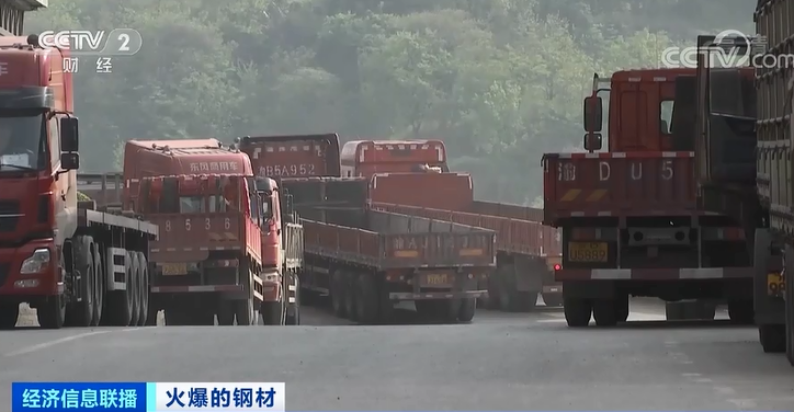钢材产品的量价齐升,带动了钢贸市场的交易火热,为了能早点儿提到货,市场仓库门前拉货的卡车甚至排起了长龙。