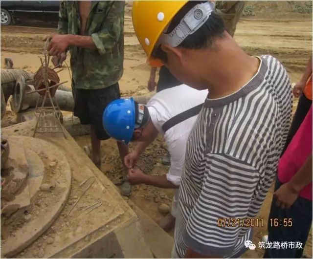 ▲锤击加压钢护筒时保证钢护筒垂直,避免倾斜