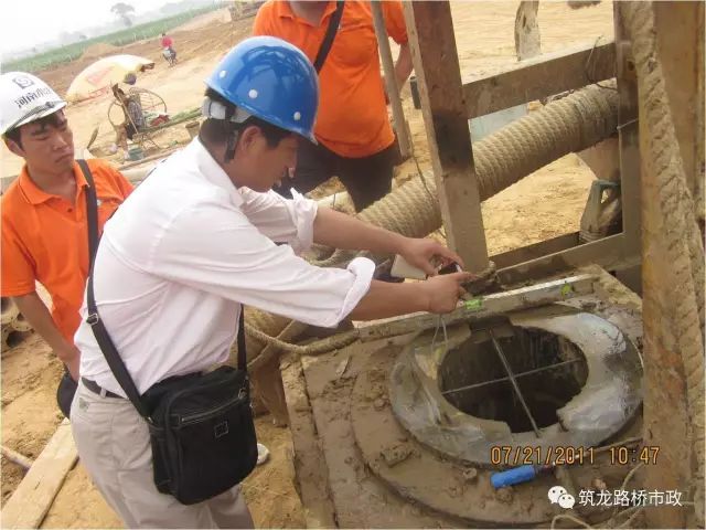 3.由监理到现场进行验收包括孔深、孔径、倾斜度等。