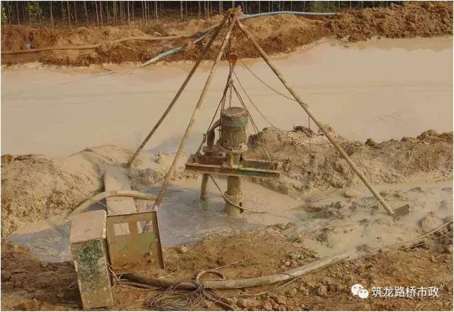(h)清孔后泥浆比重、粘度等指标降低,’用空气吸泥机清孔,泥浆吸走后未及时补水,使孔内水位低于地下水位,清孔操作不当,供水管直接冲刷孔壁,清孔时间过久或清孔后停顿过久。