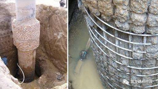在透水性强或有地下水流动的地层中,稀泥浆会向孔外漏失,护筒埋设太浅,回填土不密实或护筒接缝不严密,会在护筒刃脚或接缝处漏浆,也可能由于水头过高使孔壁渗浆。