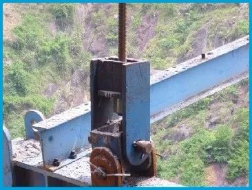 滑道与主梁之间的支腿、滑板、滚轮等。