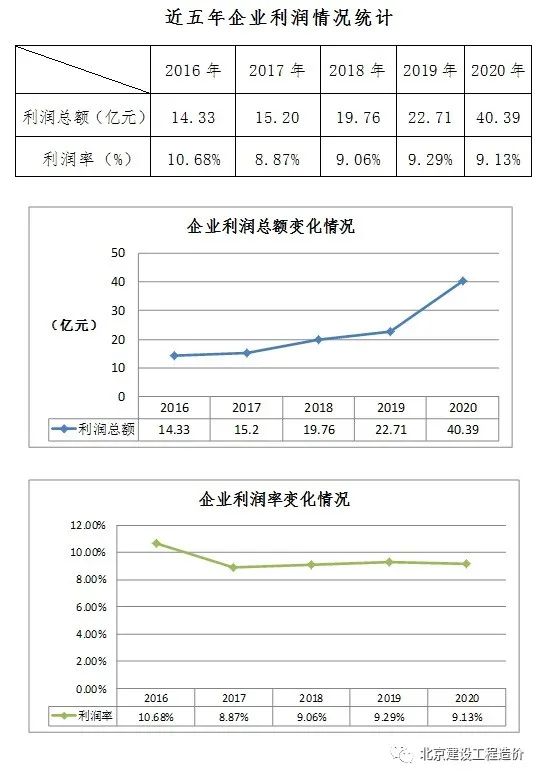 统计数据显示,企业利润总额呈逐年增加趋势,但是企业利润率基本保持在9%左右。但此利润是企业所有业务的综合利润,并不能直接体现造价咨询业务的利润。