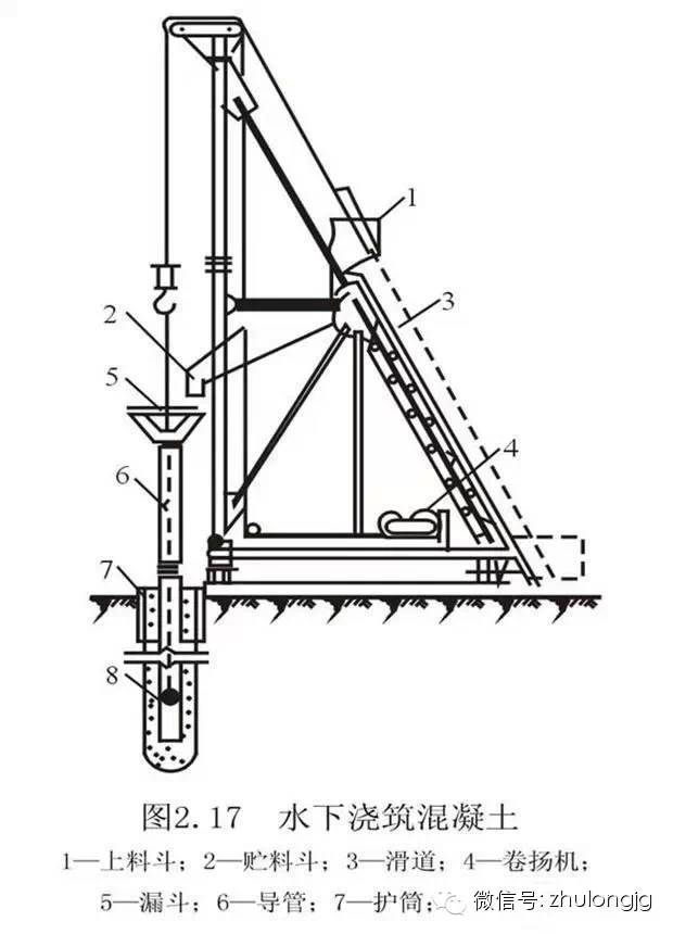 泥浆护壁成孔灌注混凝土的浇筑是在水中或泥浆中进行的,故称为浇筑水下混凝土。水下混凝土宜比设计强度提高一个强度等级,必须具备良好的和易性,配合比应通过试验确定。