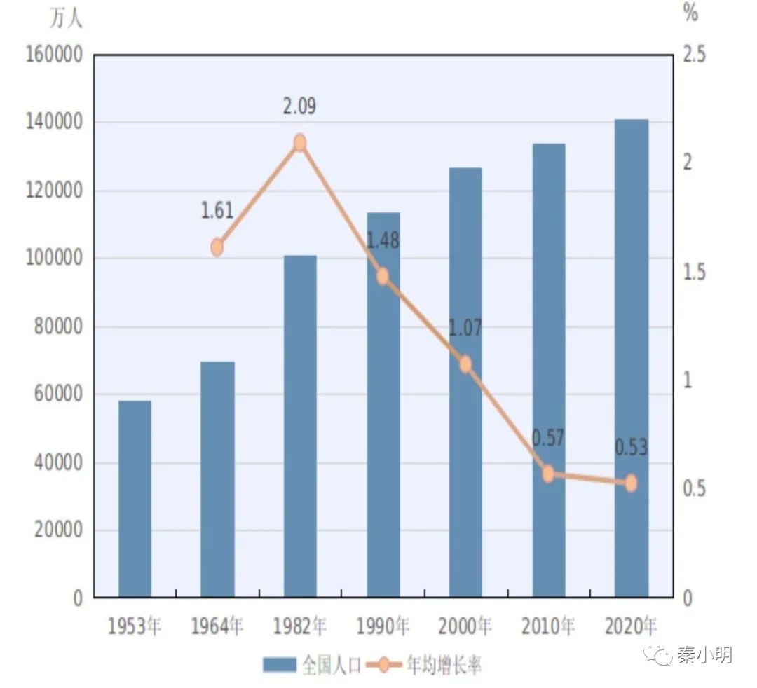 1)总人口为141178万人(不含港澳台),与上一次人口普查数据公布的2010年比,总体数据保持增长,但增速较低。年均增长仅为0.53%。如果不以10年为界,相信最近几年的增长率会更低一些。