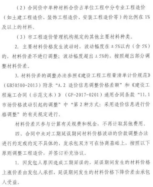 三、发承包双方应按照工程造价管理的相关规定,就材料价差调整等问题及时签订补充合同或协议。