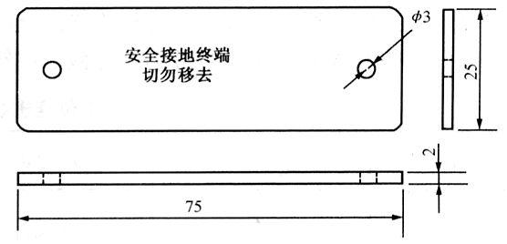 配电金属线管、金属线槽、电缆桥架等应作等电位连接。等电位连接处应悬挂警告性告示牌,警告牌由白色塑料制成,上面印有红色字样。金属线管等电位连接如图6所示,接地警告性告示牌如图7所示。