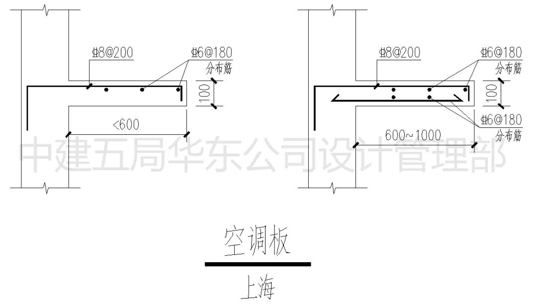 《构造手册》P127:空调板长度小于600时,单层配件;全国工程空调板长度不大于1200时,可单层配筋。