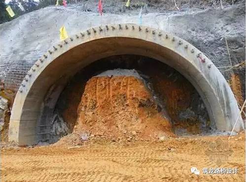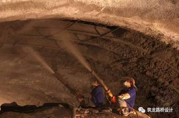 隧道一般是分两层支护,第一层就像上图这样的,喷射混凝土上去之后它就具有了一定的稳定能力。