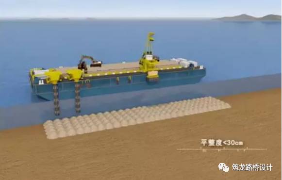 实际操作的时候有专用的视频监控设备,清除淤泥之后,根据海底的基础情况可能要用打入挤密砂桩,抛石等等手段,使基础密实。如下图:
