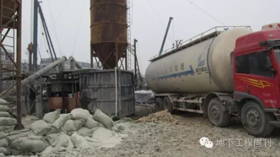 通过试桩确定注浆压力、气压、下沉与提升速度、浆液流量、水泥掺量:注浆压力0.5~0.8Mpa、气压为0.5~0.6Mpa、下沉速度0.22m/min、提升速度0.88m/min、浆液流量460L/min。