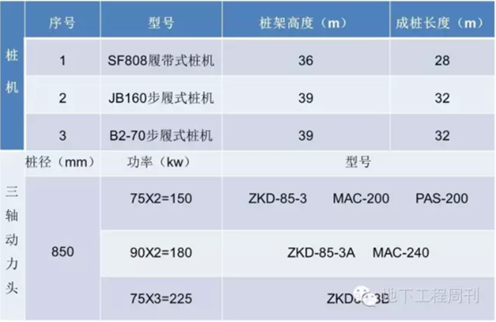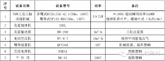 SMW工法最常用的是三轴型钻掘搅拌机,其中钻杆有用于粘性土及用于砂砾土和基岩之分,此外还研制了其他一些机型,用于城市高架桥下等施工,空间受限制的场合,或海底筑墙,或软弱地基加固。