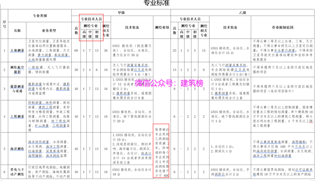 测绘资质分类分级标准