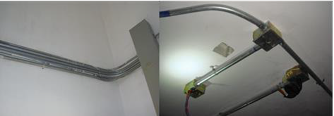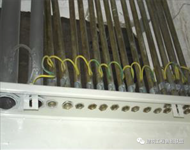 桥架、线槽进柜末端没有与配电柜柜体(箱体)进行可靠电气连接。将桥架、线槽进柜(箱)末端与柜(箱)体可用铜编织线进行可靠的电气连接。1、成排线盒预埋前应使用钢筋将线盒逐一点焊,固定牢固,防止后续施工造成线盒位置偏移;2、控制面板安装高度应符合规范要求,无偏差,间距宜不小于5cm,均匀一致,面板安装牢固,紧贴墙面,四周无缝隙。2、明配线管没有使用专用的固定卡件,跨接线未安装。1、将排布不顺直、弧度不一致的明配线管拆除,重新调整弧度一致、顺直美观;2、拆除明配线管中的普通固定件,更换使用“元宝卡”进行固定,安装跨接线。1、电缆桥架内电缆应在首尾两端、弯曲的两侧及每隔5-10米处设置固定点,现场不满足要求的,应补增绑扎固定点;2、电缆隧道及电缆竖井等进出两端,应补上遗漏的标志牌。2、接地母线应刷黄绿相间标识油漆,条纹宽度100mm。