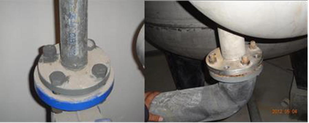 2、法兰螺栓外露丝扣突出螺母长度大于1/2 螺杆直径;1、尽量要选用与管件同材质的螺栓,若采用非统一材质时,在相互接触面采取绝缘措施;2、材料进场验收加强管理,确保采购法兰与设备法兰规格、型号一致;3、连接法兰的螺栓,突出螺母长度不应大于螺杆直径1/2,宜为2~3扣。