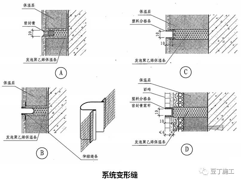 (3)粘结砂浆质量差,聚苯板与砂浆的粘结强度不足;(5)保温板表面荷载过大,极易直接剥离保温层造成脱落;措施:做好保温系统中聚合物砂浆、保温板材等材料的选取和控制;加强过程验收和执行抽检制度;设置分格缝,以吸收墙体结构变形及墙饰面本身温度变形,防止因此而导致的开裂和脱落;必须选用耐碱性能符合标准要求玻纤网、耐腐拉拔力符合标准的锚固件;在施工时对现场墙基面进行界面处理、对使用粘结材料的控制、粘结面积的控制并确保粘结时间。(1)外保温墙体基层设计时大多数不采取水泥砂浆找平,或采取水泥砂浆找平施工时一般没有做防水处理要求;(2)水泥砂浆施工当时气温差异或者说干缩开裂造成缝隙。(3)外保温墙体保温及抗裂层施工干缩开裂造成缝隙;(4)苯板粘贴时局部出现通缝或在窗口四角没有套割;面层中网格布的埋设位置不当,过于靠近内侧;因网格布间断开无搭接或搭接尺寸不能满足规范的要求,窗口周边及墙体转折处等易产生应力集中的部位未设增强网格布; (5)未安窗框先作保温或者做完保温后单抹窗口,外窗框密封胶位置不当;未设保温系统的变形缝,因系统的连续面过长累积变形过大而引起面层的开裂。措施:加强材料验收、隐蔽验收、检验批验收等管理工作;外墙不同材料交接处宜附加金属网后进行找平层施工;防水层应设分格缝;预留门窗洞口尺寸要准确,窗框安装、密封到位;外墙防水层施工时,基层应充分润湿,并分层抹压;施工完后应及时进行淋水养护;保温层施工时墙体界面砂浆涂刷到位,保温板安装排版到位、平整密实,网格布的埋设及搭接合理、压紧抹平;采用柔性防水材料嵌缝,可吸收变形,增加饰面抗渗性能;应在隔一定高度处留设水平伸缩缝,缝中安装间断的托架承担自重,防水产生水平裂缝。(2)施工方法不规范,缺乏施工过程的必要质量控制致使技术、材料的质量性能不符合要求。(3)墙体和保温材料里的水分还没有散发出来,抢工期上防护和装饰层引起长霉、结露现象。(4)外保温墙体干缩开裂造成缝隙,受雨淋后,“水的毛细虹吸”现象,使雨水渗入后导致建筑物室内潮湿、发霉。措施:改善室内湿度死角,保持良好的通风条件;尽量使保温层与窗连接成一个系统以减少保温层与窗体间的保温断点,避免窗洞周边的热桥效应;加强窗根部上口的滴水及窗下口窗根部的防水处理,防止水从保温层与窗根的连接部位进入保温系统的内部;施工时做好保温材料防水措施及成品保护;保温板过大缝隙、脚手架孔洞需用保温板条填塞处理或保温材料堵严。