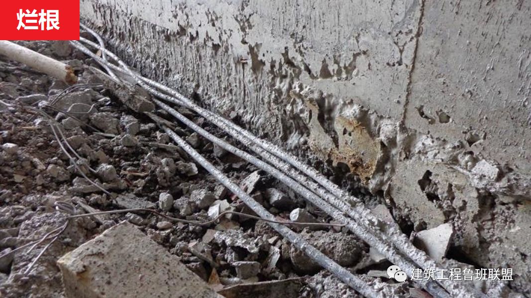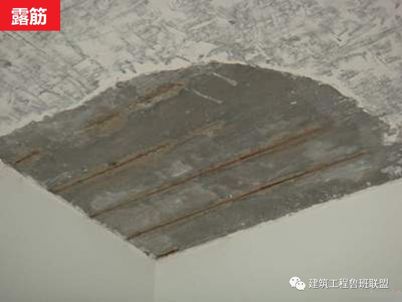 混凝土浇筑过程中振捣不到位,保护层垫块没有设置或者固定不牢固,混凝土坍落度小、拆模过早、硬化前受外力受到破坏,成型后钢筋外露的现象。