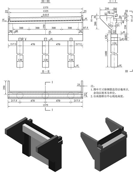 图11-9 桥台结构图及立体示意图