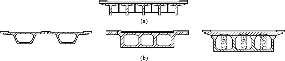 图11-5 桥梁的截面形式 (a)装配式T形梁;(b)箱梁桥横截面