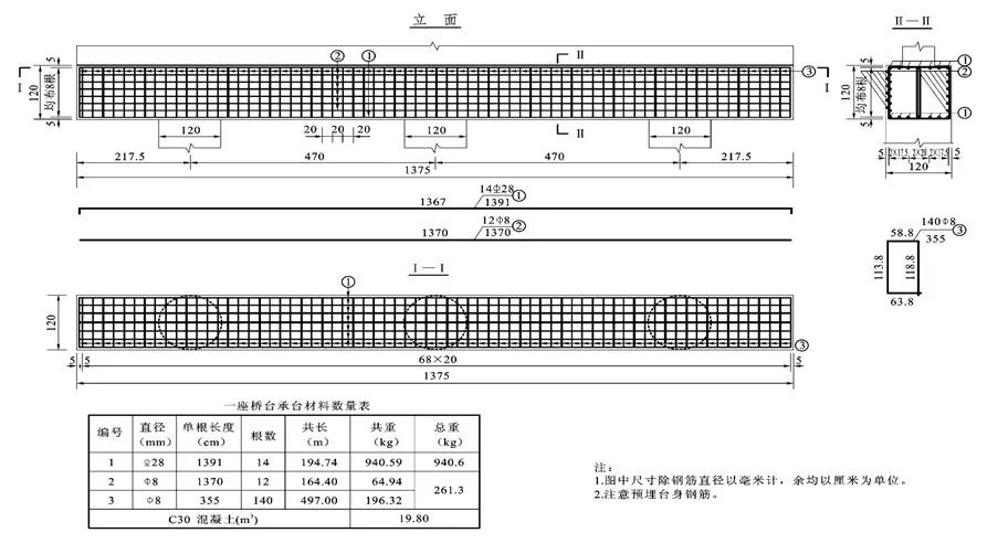(2)尺寸单位:在路桥工程图中,钢筋直径的尺寸单位采用mm,其余尺寸单位均采用cm,图中无需注出单位。