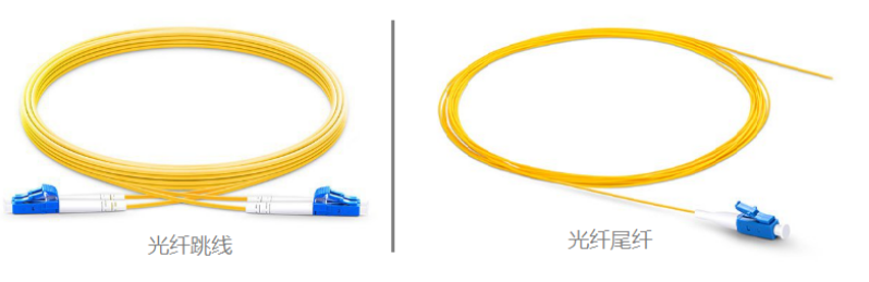 6. 光纤跳线及尾纤,光跳线指两端均有接头的光纤,尾纤则仅有一端有接头。跳线和尾纤都分单芯和双芯两种。