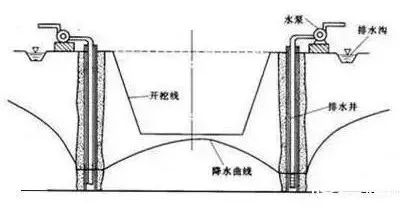 基坑降水是指在开挖基坑时,地下水位高于开挖底面,地下水会不断渗入坑内,为保证基坑能在干燥条件下施工,防止边坡失稳、基础流砂、坑底隆起、坑底管涌和地基承载力下降而做的降水工作。降水的施工工程是深基坑施工的一到重要的施工环节,很大部分的基坑事故都是与地下水有关系。