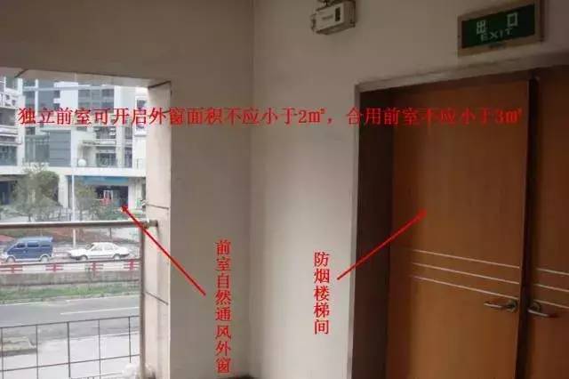 1. 防烟楼梯间及前室(安全性较高的安全出口)、消防电梯前室(灭火救援通道);