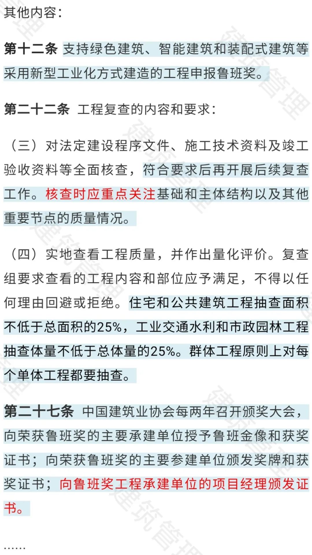 第三十条 为充分发挥鲁班奖工程的示范引领作用,促进工程质量水平的提高,中国建筑业协会适时开展有关活动对创鲁班奖工程经验进行交流和推广。