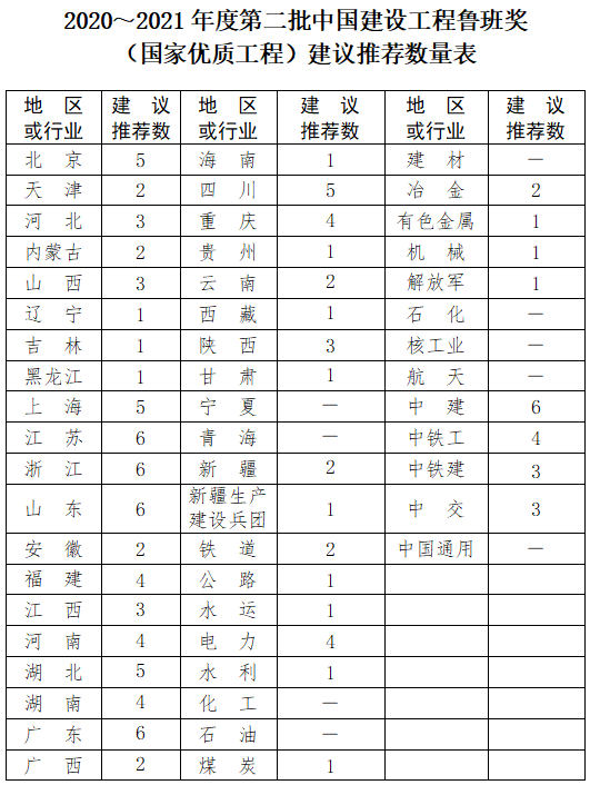 另一份是关于开展2020~2021年度第二批中国建设工程鲁班奖(国家优质工程)评选工作的通知。