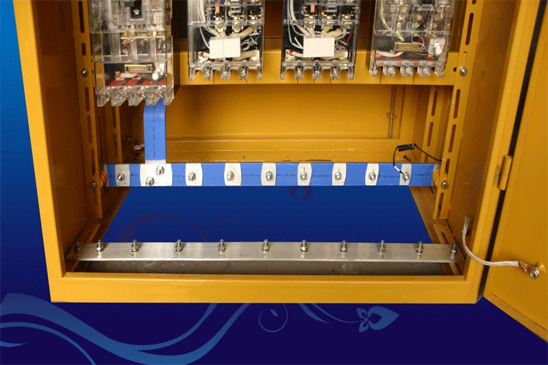 内设400A-630A具有隔离功能的DZ20型透明塑壳断路器作为主开关,分路设置4-8路采用具有隔离功能的DZ20系列160A-250A透明塑壳断路器,配置DZ20L(DZ15L)透明漏电开关或LBM-1系列作为漏电保护装置,使之具有欠压、过载、短路、漏电、断相保护功能,同时配备电度表、电压表、电流表、两组电流互盛器。漏电保护装置的额定漏电动作电流与额定漏电动作时间的乘积不大于30mA.S。最好选用额定漏电动作电流75-150mA,额定漏电动作时间大于0.1S小于等于0.2S,其动作时间为延时动作型。