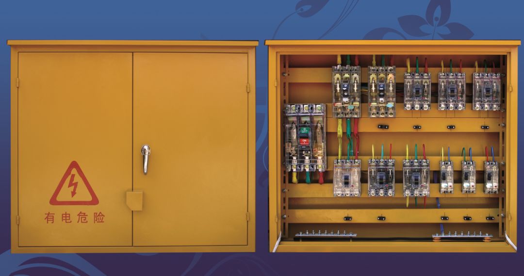 内设200A-250A具有隔离功能的DZ20系列透明塑壳断路器作为主开关(与总配电箱分路设置断路器相适应);采用DZ20或 KDM-1型透明塑壳断路器作为动力分路、照明分路控制开关;各配电回路采用DZ20或KDM-1透明塑壳断路器作为控制开关;PE线连线螺栓、N线接线螺栓根据实际需要配置。