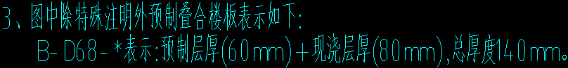 二看水平向构件平面布置图。看同位置是否有预制板,如有预制板看其编号。本项目中同位置有预制板,厚度为60mm,现浇层厚度为80mm,叠合板总厚140mm,与板平面布置图相吻合。