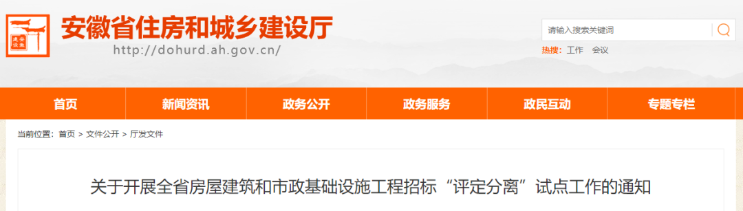 近日,安徽省住建厅发布《关于开展全省房屋建筑和市政基础设施工程招标“评定分离”试点工作的通知》。明确: