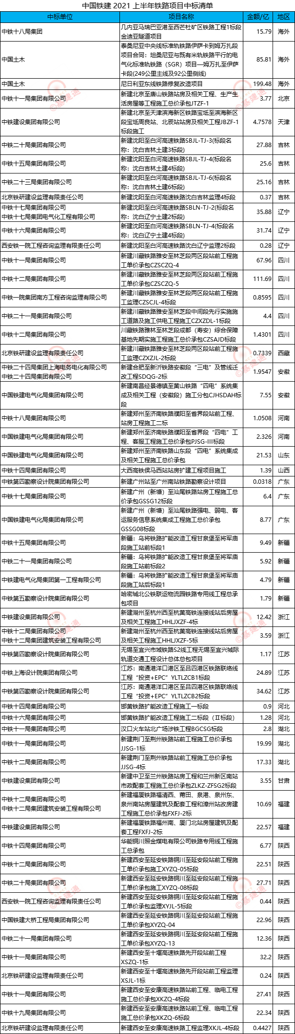 中标的项目主要为:西延高铁铜川至延安段、西十高铁先开段、西康高铁、川藏铁路雅林段、隆黄铁路隆昌至叙永段、沈白高铁、巢湖至马鞍山城际铁路、合肥至新沂铁路安徽段、新建南昌经景德镇至黄山铁路。而这些铁路无一不是“十四五”重点建设的铁路工程项目。
