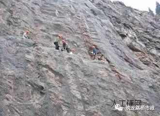 挤压锚杆成孔:如果石质边坡硬度不大,可以采用直接施打锚杆的方法。选用直径14mm左右的螺纹钢筋,长度约35cm,端部削尖,经过悴火处理,用锤子直接进行施打,施打入边坡深度不小于20cm,纵横间距为1m,边、角局部适当加密。