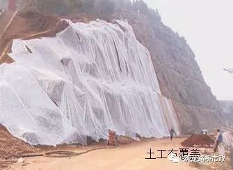 5)无纺布覆盖:喷播后应及时覆盖无纺布,从上到下平整覆盖,坡顶延伸30cm用上压住;两幅相接叠加10cm,然后用竹签或3#铁线做成的"U"型钉进行固定,固定间距100cm。待草长到5~6cm或2片叶时,揭去无纺布。