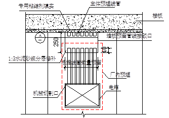 2)墙体安装时,必须保证顶部批浆密实,下部用木楔塞紧,下口预留30mm缝隙。待墙体静置最少7天以后进行退木楔,填塞底部1:3水泥砂浆坐浆料,静置期间,墙上不得进行任何作业。 3)配电箱应在厂内预埋,补强;如不能在厂内预埋、安装,则必须在墙板安装 (上墙)前在工地预埋、安装。
