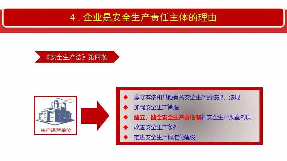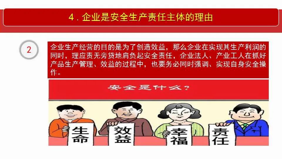 企业董事长、总经理等法定代表人和实际控制人是安全生产第一责任人,对本单位的安全生产工作全面负责,应亲自推动安全生产制度的建立,经常深入一线检查安全生产工作,监督安全生产制度落实,研究解决安全生产突出问题。每年至少向职工大会或者职工代表大会、股东会或者股东大会报告一次安全生产情况,接受职工、股东监督。加强对下属独立法人单位的监督检查,督促其落实安全生产责任。企业必须牢固树立法治观念,从事生产经营活动应依法取得安全生产相关证照和许可,符合法律法规、国家和地方标准或者行业标准规定的安全生产条件,及时主动获取并严格执行与安全生产相关的法律法规标准,依法健全完善安全生产规章规程和安全防范措施,严禁使用国家和省明令淘汰的危及生产安全的设备及工艺,及时淘汰更新陈旧落后的设备及工艺。生产有毒有害物质或发生事故可能影响公众安全健康的高危行业企业,应建立与公众沟通的交流机制,定期公布相关信息,自觉接受社会监督。