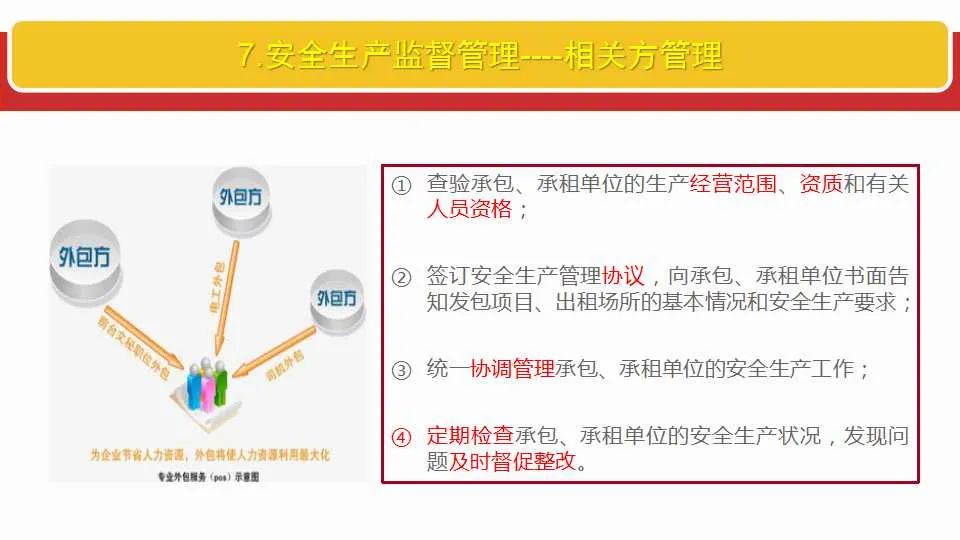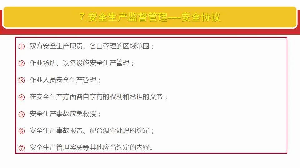企业委托其他具有专业资质的单位进行危险作业的,应在作业前与受托方签订安全生产管理协议,告知其作业现场存在的危险因素和防范措施,明确各自的安全生产职责。企业将生产经营项目、场所、设备发包或出租的,应与承包、承租单位签订专门的安全生产管理协议,或在承包合同、租赁合同中约定有关的安全生产管理事项。