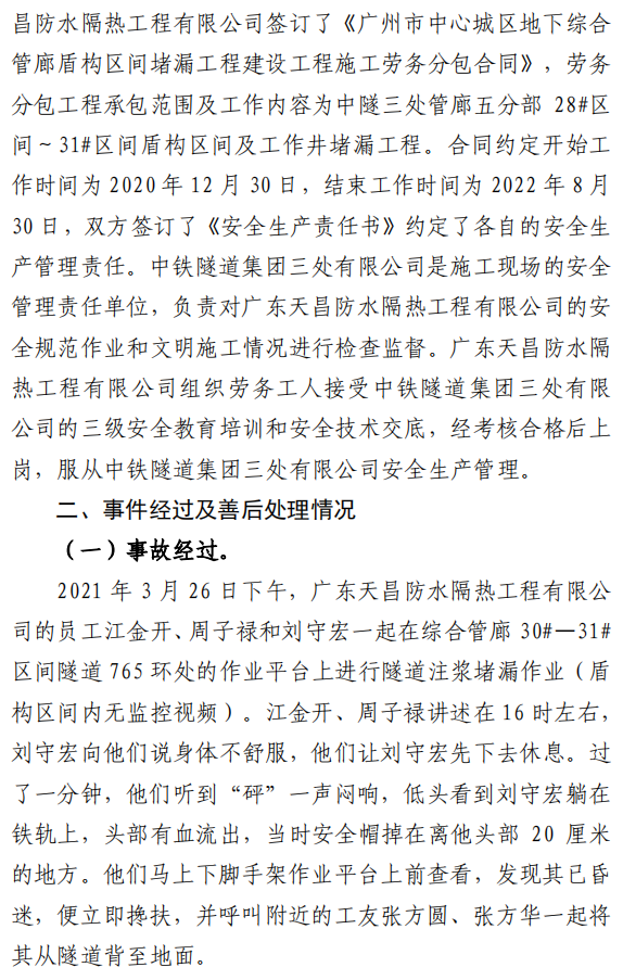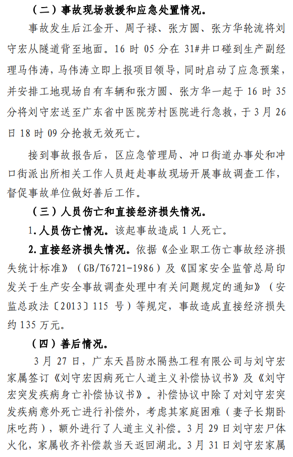 广州市荔湾区人民政府发布了《荔湾区冲口街“3•26”一般生产安全事故调查报告》,经调查认定,各参建单位履职到位,本次生产安全事故为非责任事故。