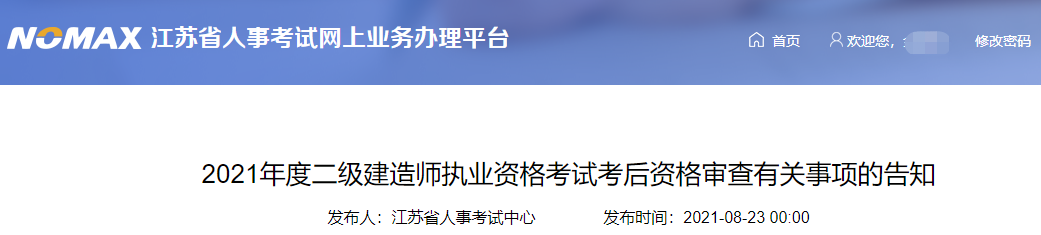 8月23日,江苏人事考试网发布《2021年度二级建造师执业资格考试考后资格审查有关事项的告知》,相关内容如下: