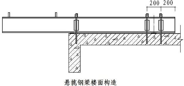 (2) 悬挑钢梁支撑点应设置在结构梁上,不得设置在外伸阳台或悬挑板上,否则加固措施点这免费下载施工技术资料。